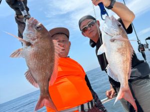 2023年7月24日 / 最終更新日時 : 2023年7月24日 webmaster 釣果情報 2023年7月2日 鯛ラバ便⛴ 鯛ラバ便⛴ ラッシュ時はネットが間に合わない程でした🤗 トップのお客様で13枚🐟最大サイズが55cm👍 他のお客様もツ抜け多数✨ 本日もご乗船ありがとうございました! 次回のご予約もありがとうございます🙇 【2号艇鯛ラバ便】 【平日】40,000円(税込)※1〜4名まで。 4名以上は1名追加につき+10,000円。最大で9名まで。 【土日祝】60,000円(税込)※1〜6名まで。 6名以上は1名追加につき+10,000円。最大で9名まで。 2号艇⛴乗合料金はお一人様10,000円(税込)となります。 皆様のご乗船心よりお待ちいたしております🙇 フォローお願いします。 FacebookXCopy